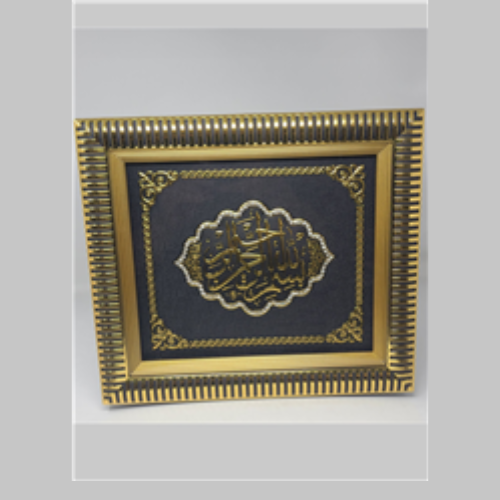 This rhinestone plaqure has BSM Allah in the middle with shiny details like a clover around the outside.