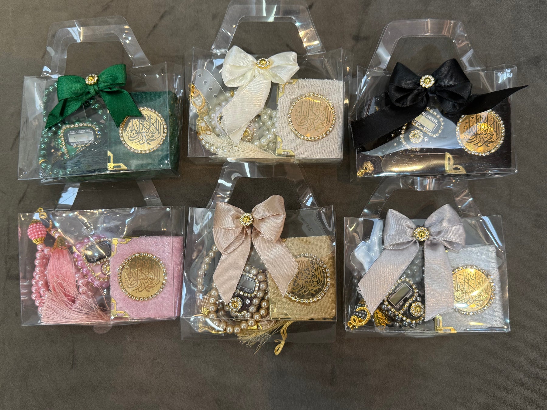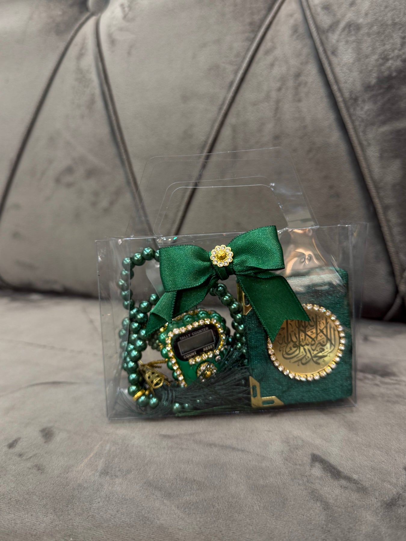 Velvet small Quran and shiny finger counter and masbaha available in various colors!