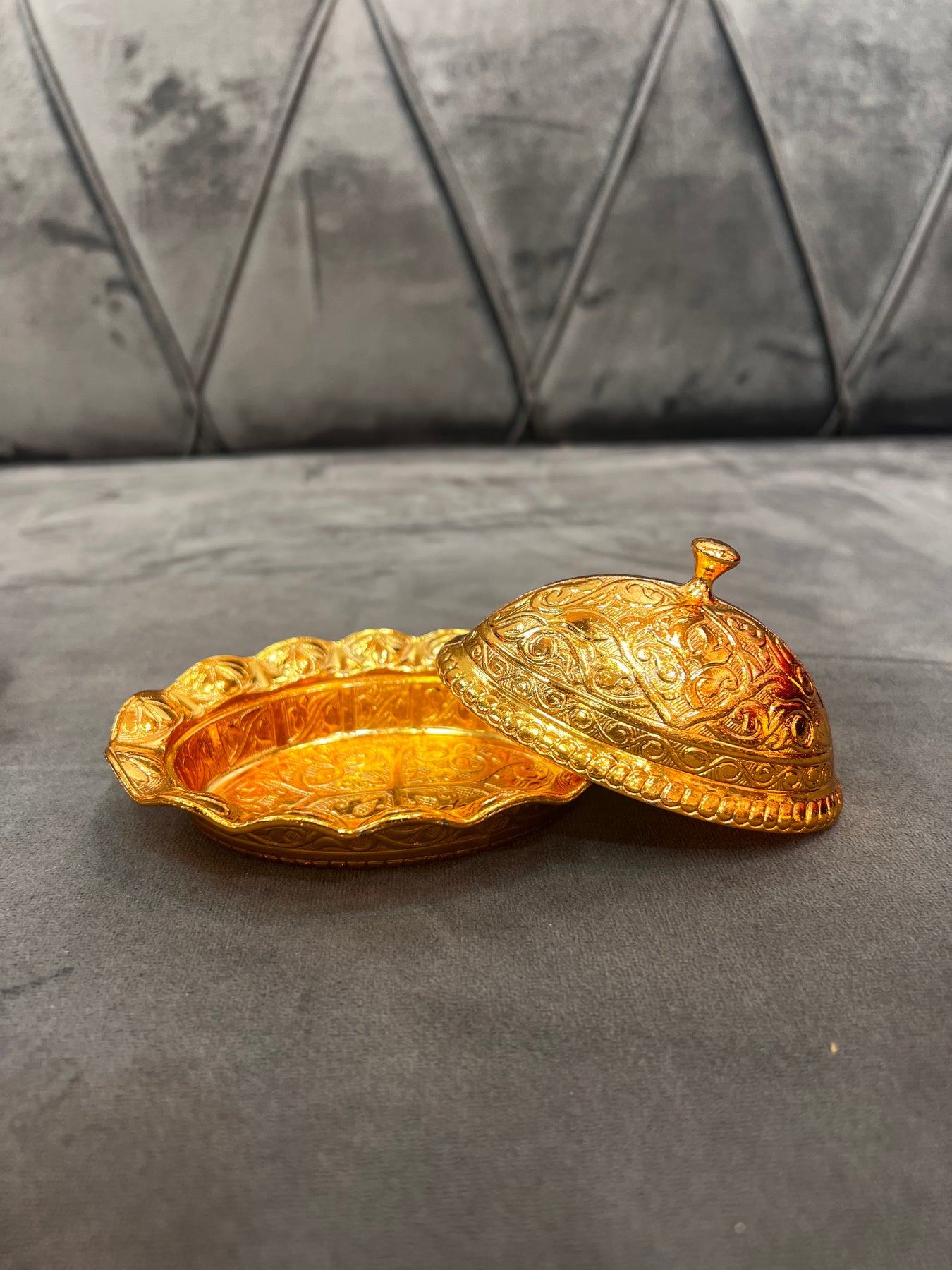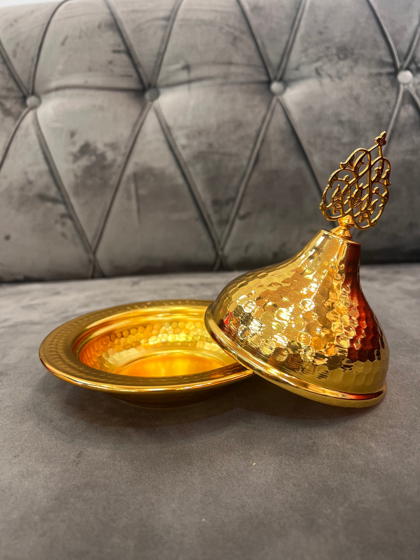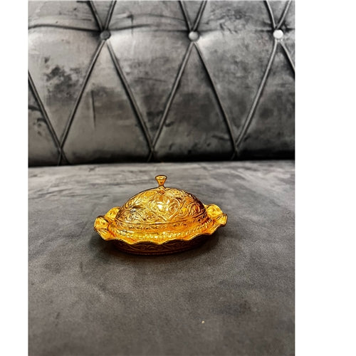 This beautiful Golden Minaret Bowl is a luxurious decorative piece designed to add elegance and charm to any home. With its graceful minaret-inspired shape and radiant gold finish, it adds a touch of sophistication to your living space, dining area, or display table. Perfect for holding dates, sweets, or simply serving as a stunning statement décor piece.